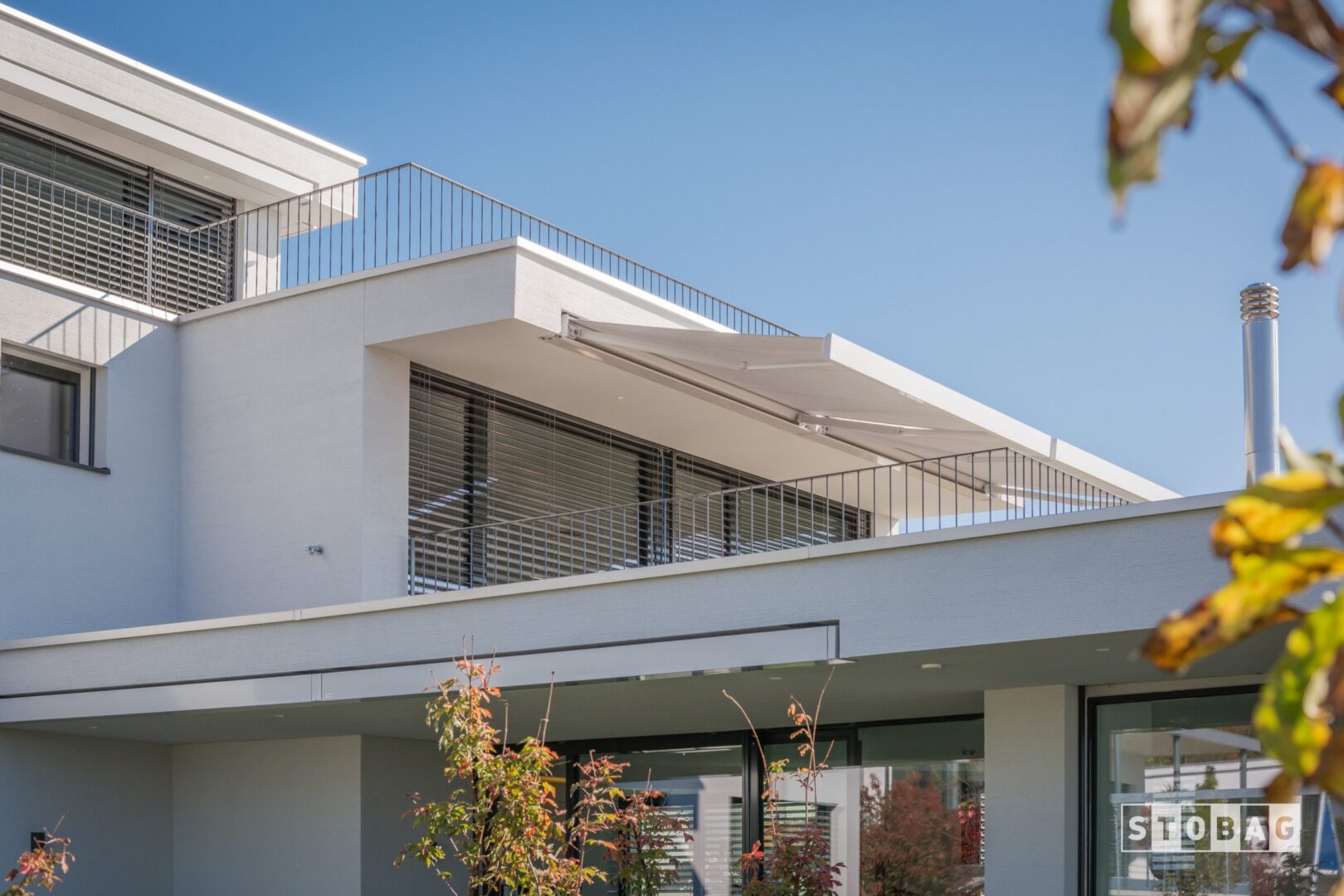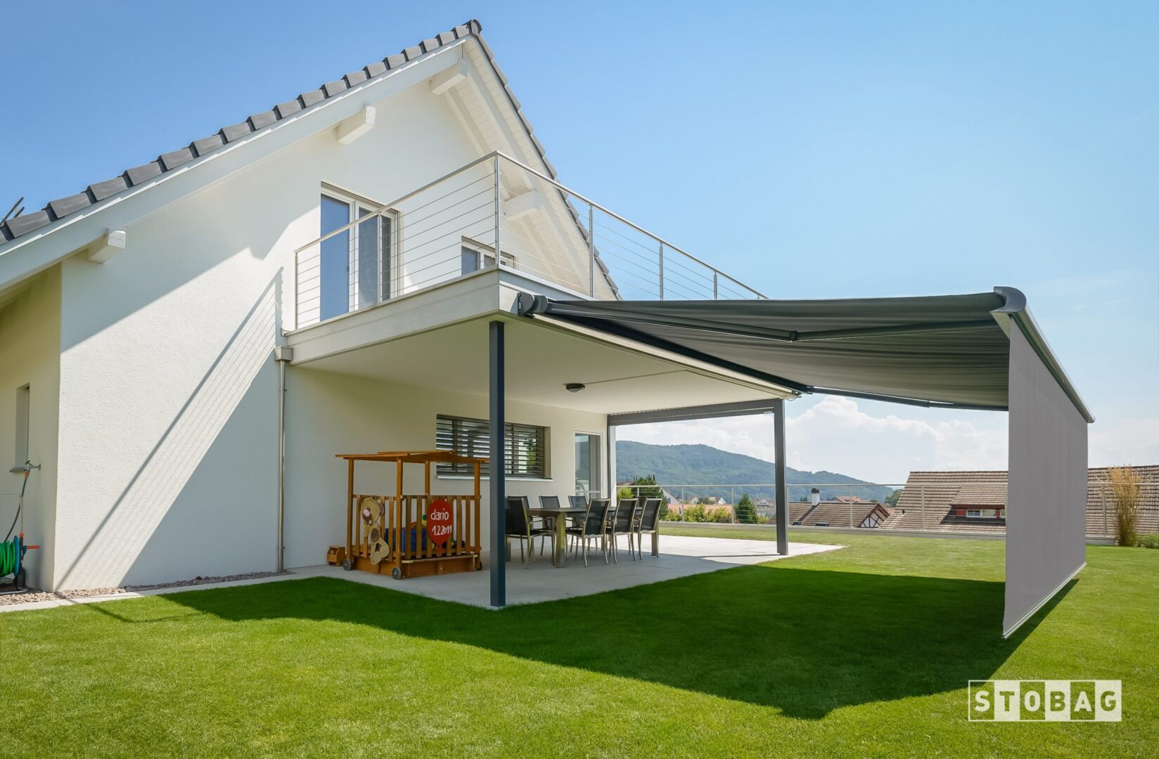 Diese Markise ist für kleine bis mittelgroße Terrassen geeignet. Ein einfach zu bedienendes Montagesystem garantiert Ihnen dabei Ihren Komfort. Die Neigungswinkelverstellung besitzt eine Verstellschraube, an welcher ebenfalls mit Leichtigkeit der perfekte Winkel angepasst werden kann. Die Befestigungsschrauben sind abdeckbar und im Hinblick auf das Gesamtbild nicht störend. Wahlweise gibt es ein eckiges oder abgerundetes Design. Das Produkt dient auch als Gestaltungselement für die Architektur. Optional: Abdeckprofil als Sichtschutz auf die Tuchwelle; VOLANT-PLUS als Sicht- und Blendschutz