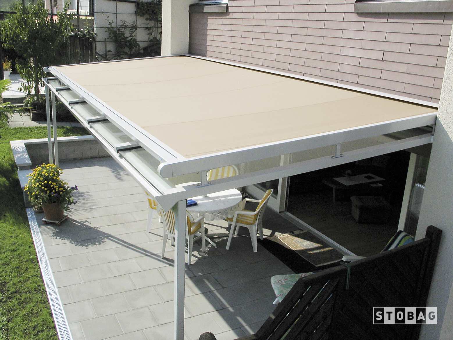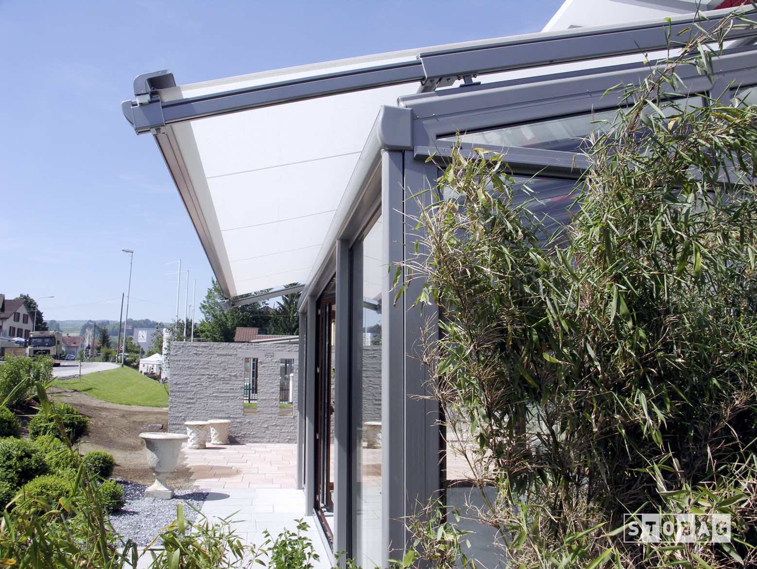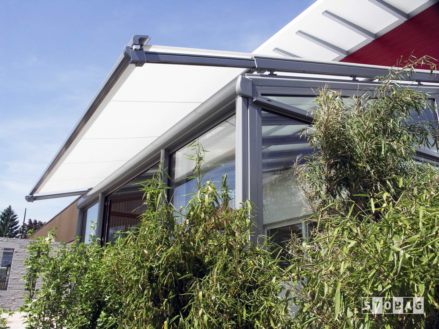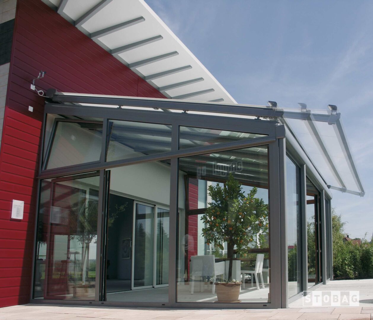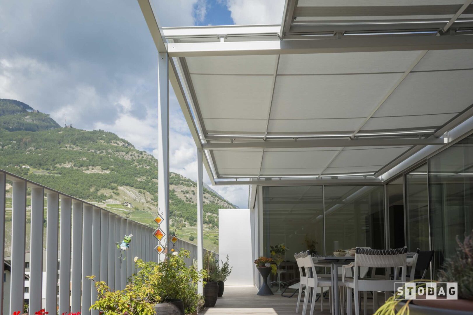Das Produkt bietet aufgrund der Dreikant-Tragrohrtechnik eine sehr hohe Stabilität. Das Dreikant-Tragrohr verfügt außerdem über ein hohes Torsions- und Durchbiegeverhalten. Die Bauweise ist sehr kompakt und das Schutzdach dem Neigungswinkel entsprechend einstellbar. Weitere Ausstattungen sind Inox-Doppeldrahtseil, Mittel-Gelenkschutz und ein Ausfallprofil mit Abtropfnase, welches auf Volant keine Wasserstreifen hinterlässt. Die Konsoleneinteilung ist flexibel.