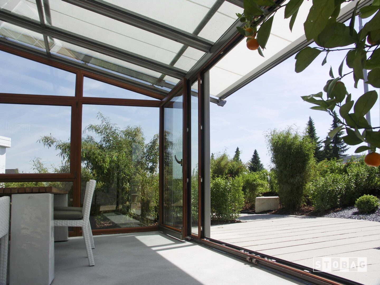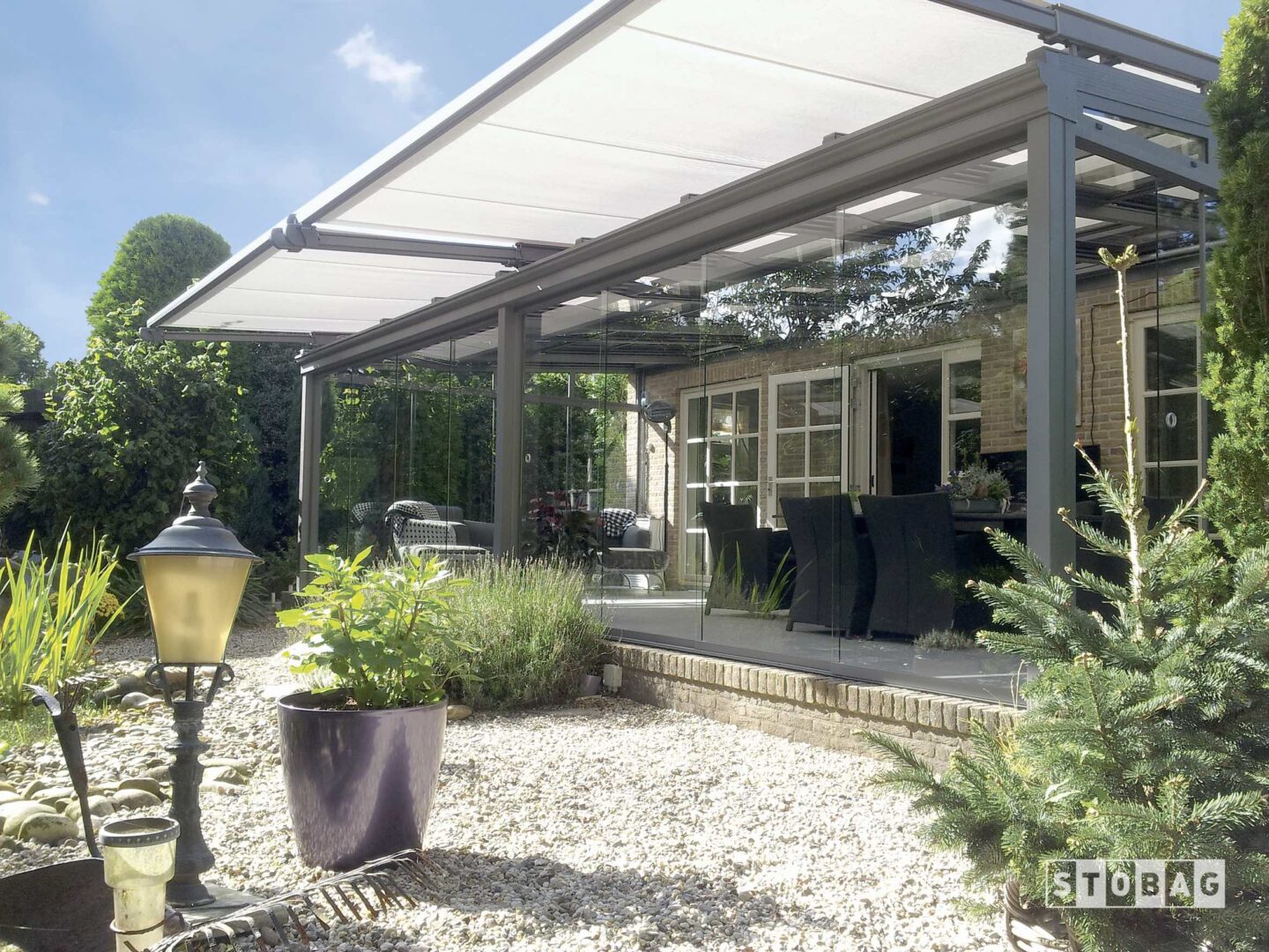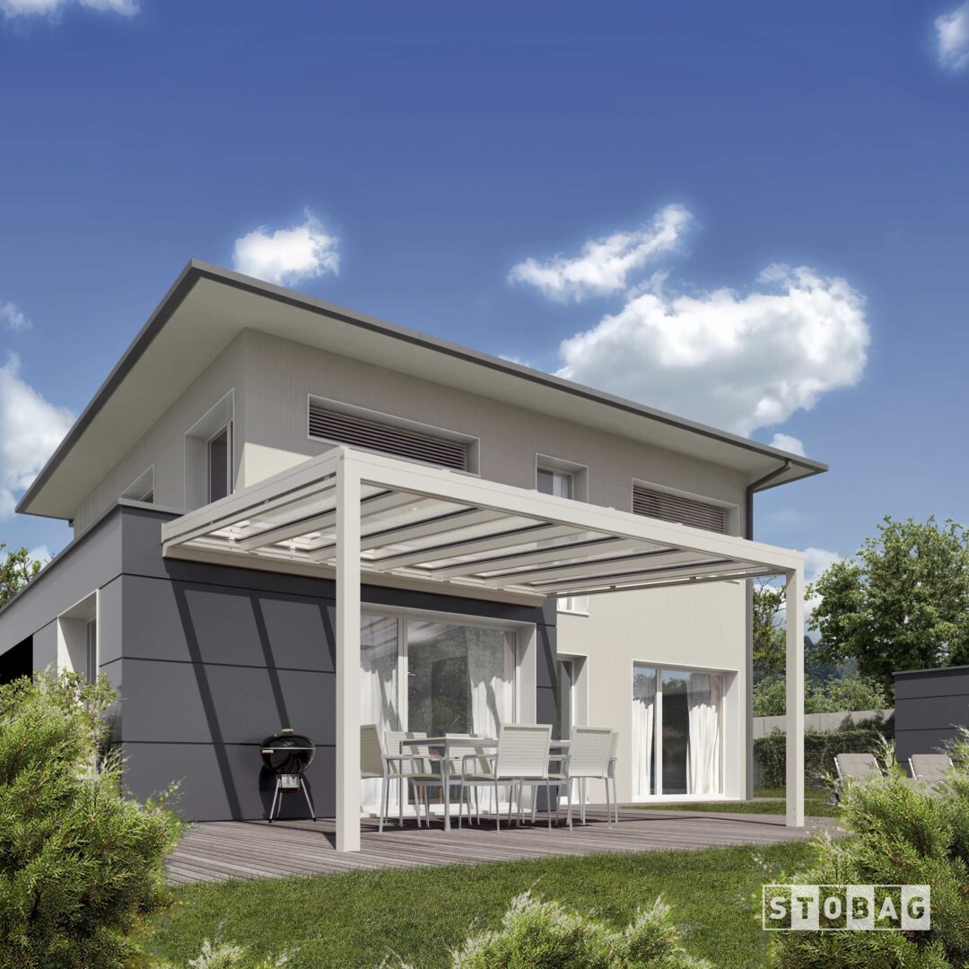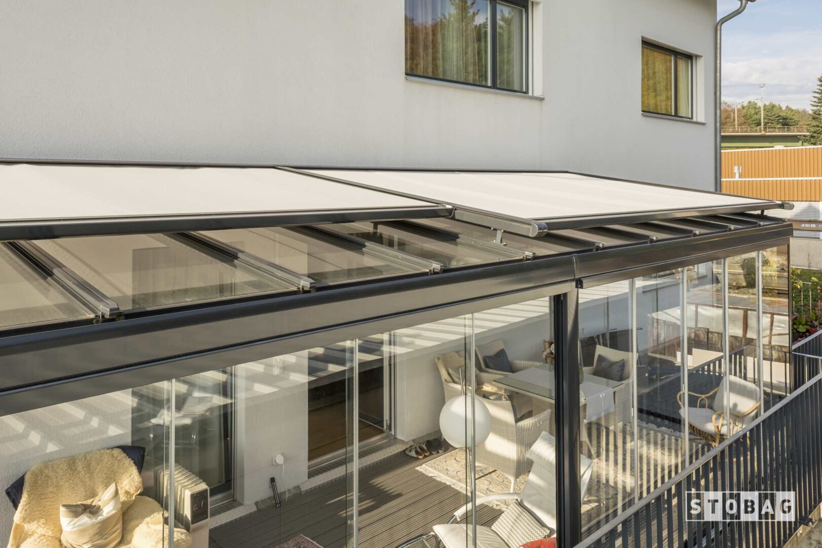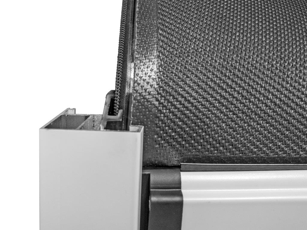 Das Produkt bietet aufgrund der Dreikant-Tragrohrtechnik eine sehr hohe Stabilität. Das Dreikant-Tragrohr verfügt außerdem über ein hohes Torsions- und Durchbiegeverhalten. Die Bauweise ist sehr kompakt und das Schutzdach dem Neigungswinkel entsprechend einstellbar. Weitere Ausstattungen sind Inox-Doppeldrahtseil, Mittel-Gelenkschutz und ein Ausfallprofil mit Abtropfnase, welches auf Volant keine Wasserstreifen hinterlässt. Die Konsoleneinteilung ist flexibel.