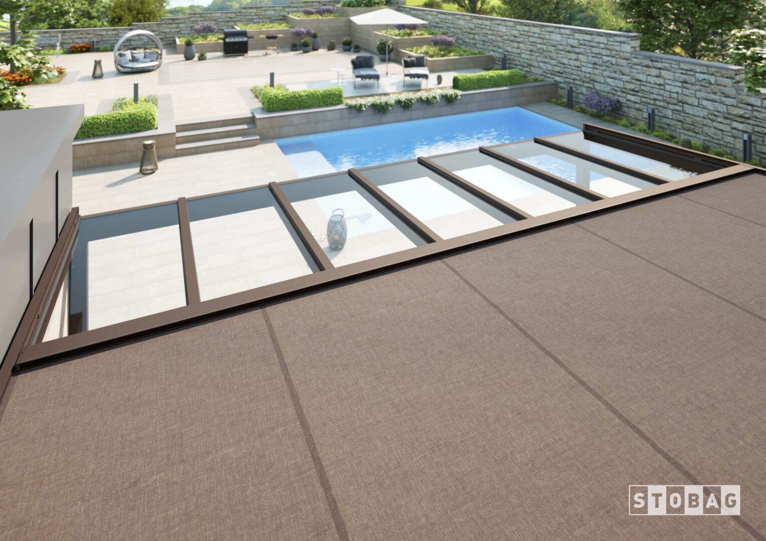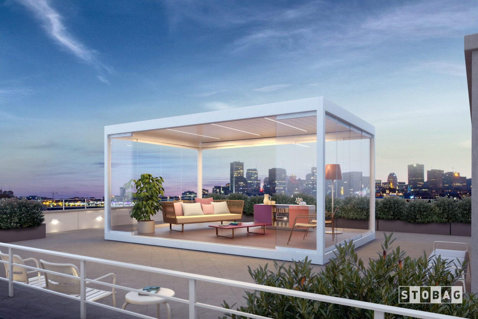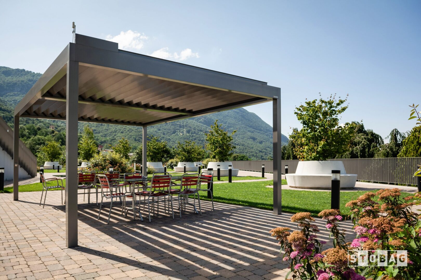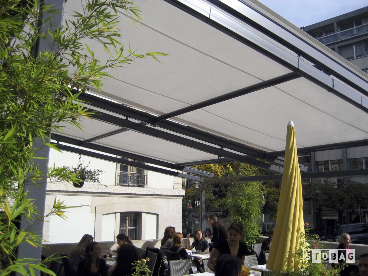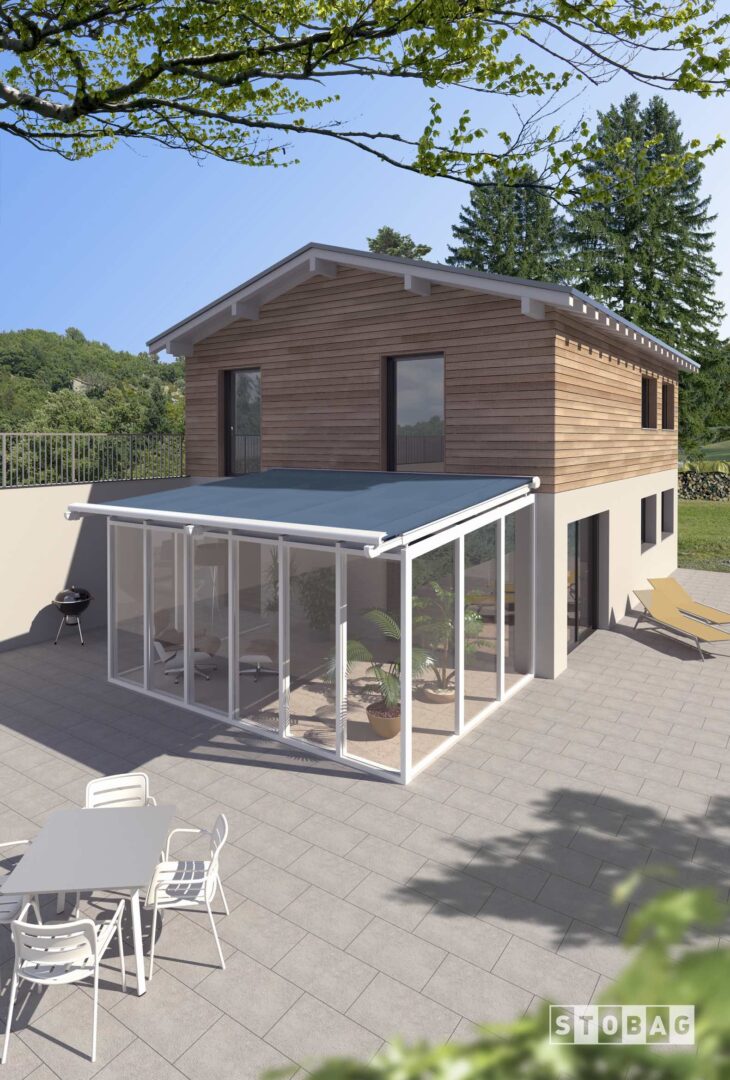 Das Produkt bietet aufgrund der Dreikant-Tragrohrtechnik eine sehr hohe Stabilität. Das Dreikant-Tragrohr verfügt außerdem über ein hohes Torsions- und Durchbiegeverhalten. Die Bauweise ist sehr kompakt und das Schutzdach dem Neigungswinkel entsprechend einstellbar. Weitere Ausstattungen sind Inox-Doppeldrahtseil, Mittel-Gelenkschutz und ein Ausfallprofil mit Abtropfnase, welches auf Volant keine Wasserstreifen hinterlässt. Die Konsoleneinteilung ist flexibel.
